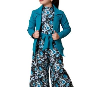 Girls Self Designed Premium Cotton Jacket Jumpsuit Dress | Floral Printed Jumpsuit Jacket Set for Birthday Girl